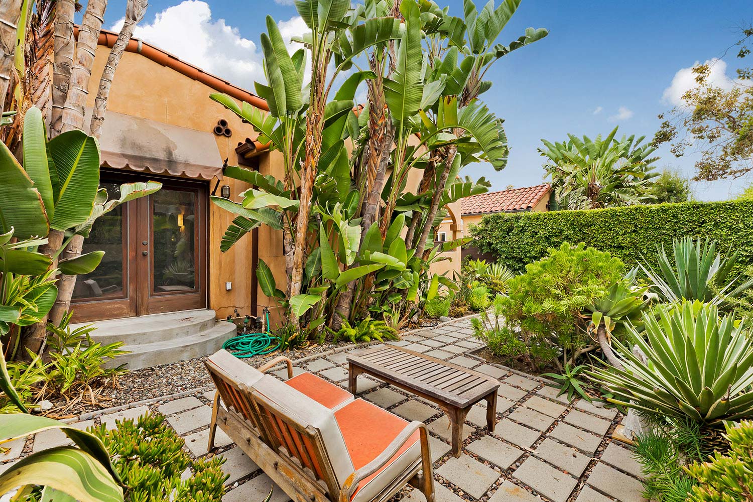 Your retreat in the city! Lush, private, gated mini-compound on 7,000 square foot lot. Main house is Spanish 3+2 w/ remodeled kitchen, hardwood floors, central AC, newer wood windows & doors, updated baths with Ann Sacks tile, and lots of charm. Garage converted (may be permitted as "recreation room" buyer to investigate) to huge detached bonus studio (approximately 700 square feet) w/ updated bathroom, French Doors, central AC, & lots of light. Incredible front and backyards feature beautiful lush mature landscaping. Parking for 5 cars. Very private and special. Amazing location close to The Grove, Melrose Village, WeHo, Trader Joes, Poinsettia Park, and all of the best restaurants, shopping, cafe's, and entertainment in LA.